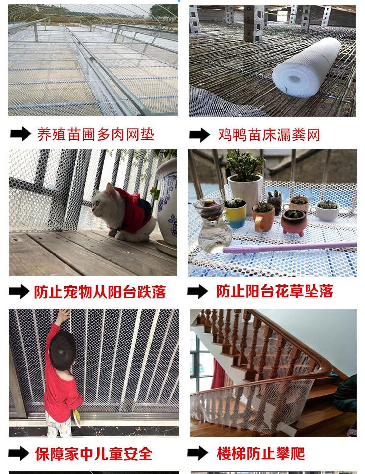 塑料平網主要適用于雞鴨養殖用網,塑料平網是以高密度聚乙稀為原料,添加其它助劑精制而成。它具有耐腐、重量輕、、無味透明度好等特性。
